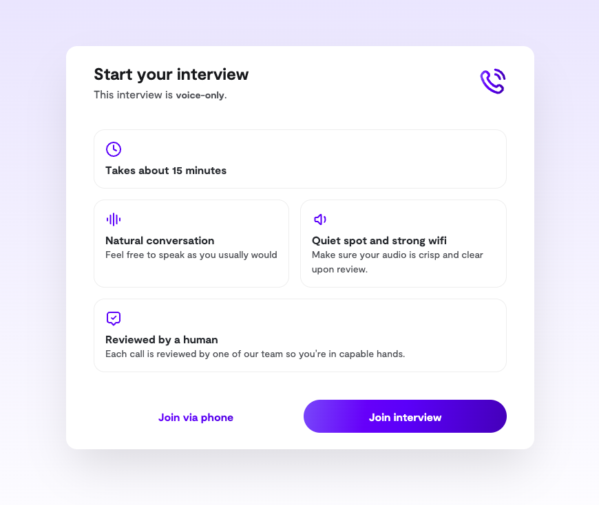 Next, we create an Interview and single-use interview link by making aPOST request to /interviews using our interview_flow_id